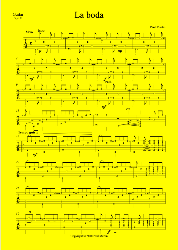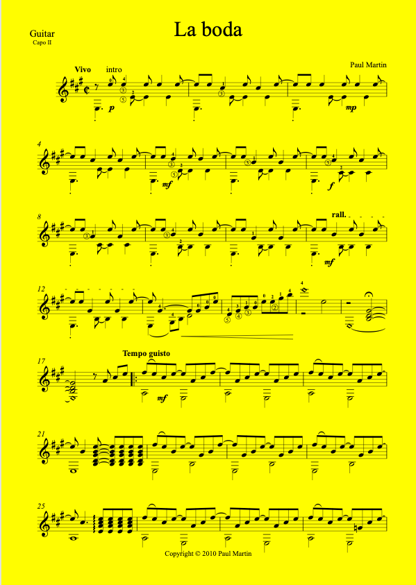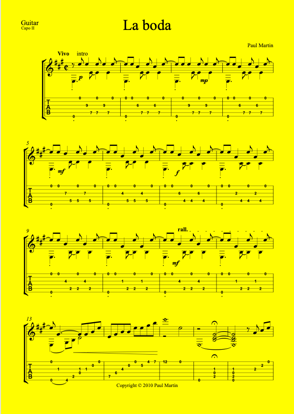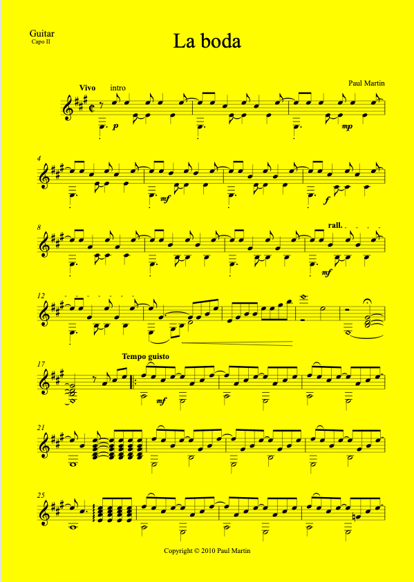 Many years ago we had a family wedding in the mountains of north Spain. It was a very dynamic and memorable occasion naturally blurred by a good Rioja and warmed by plenty of Spanish sunshine. 'La Boda' brings the memory back to life on the guitar, hence the name.